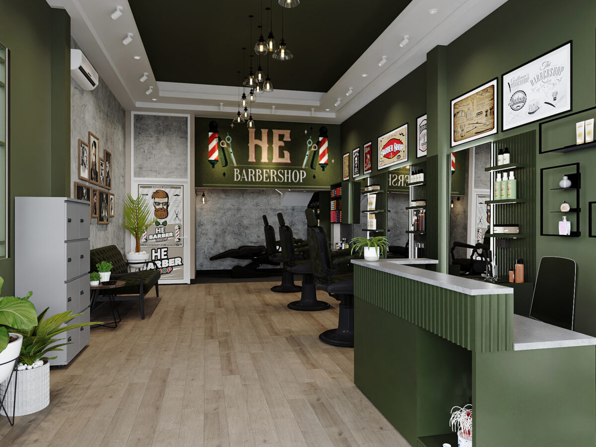 Barber shop tone xanh rêu chủ đạo ấn tượng