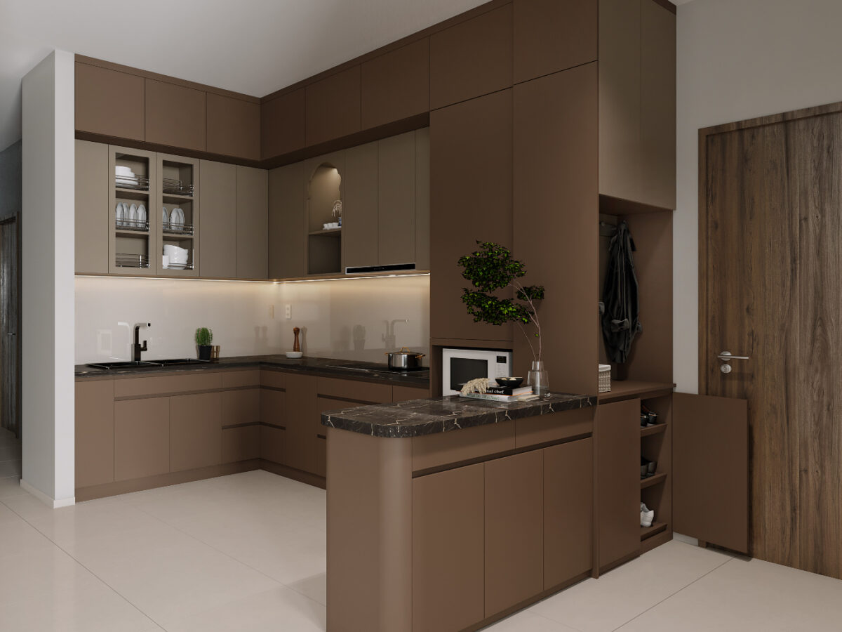 Căn hộ 1PN chung cư Lũy Bán Bích – Cải tạo bếp và PN tone nâu cà phê