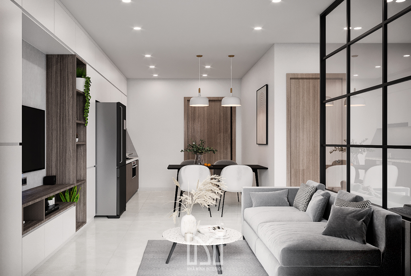 Căn hộ với tone xám chủ đạo đem lại cảm giác hiện đại, thoáng đãng và sáng sủa.