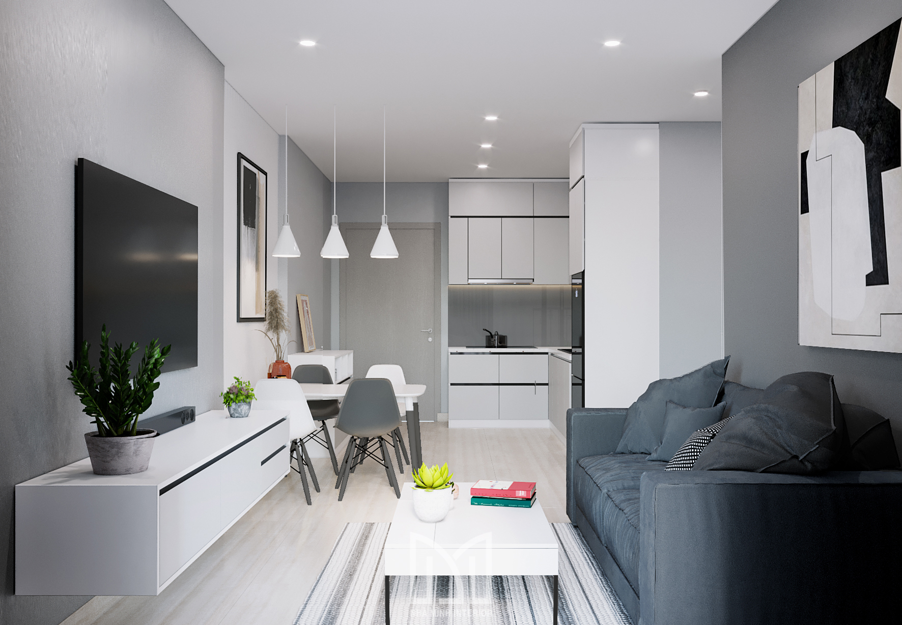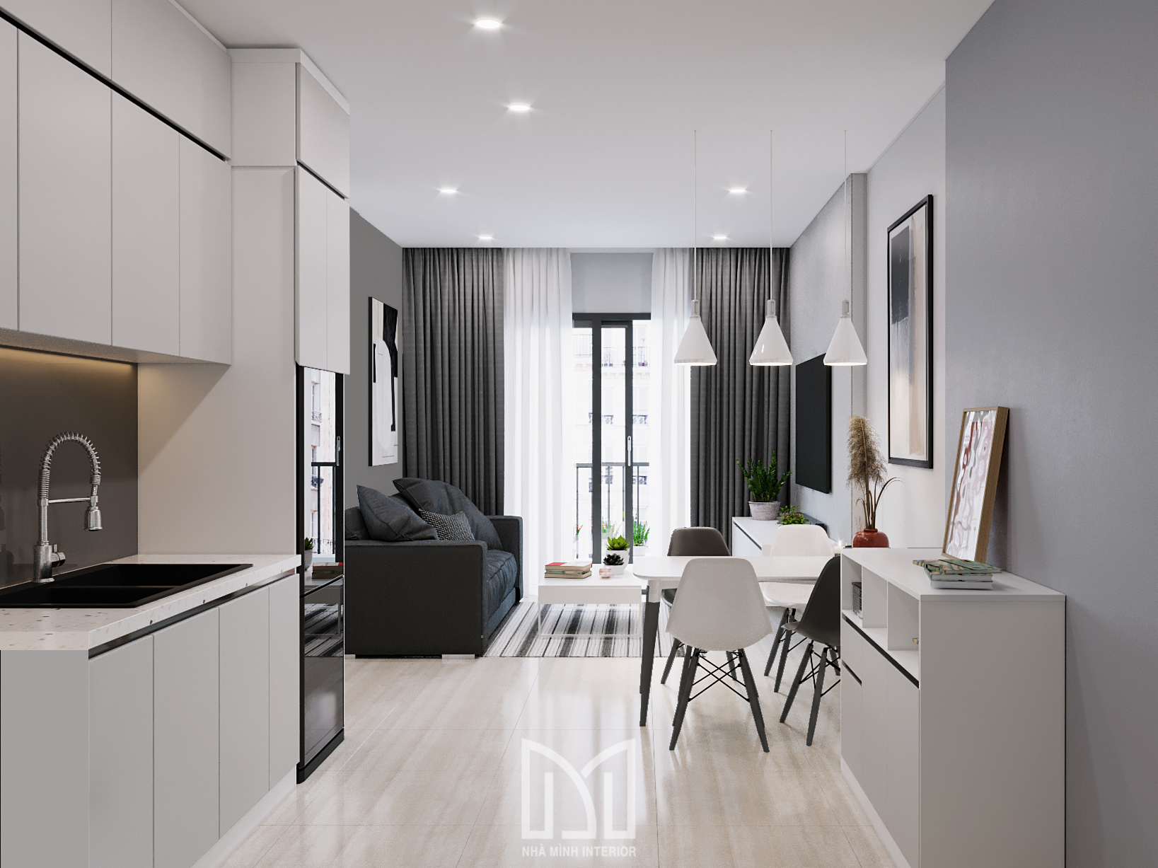 Căn hộ tone xám trắng mang lại cảm giác tối giản, hiện đại, và tinh tế cho không gian ở của bạn.