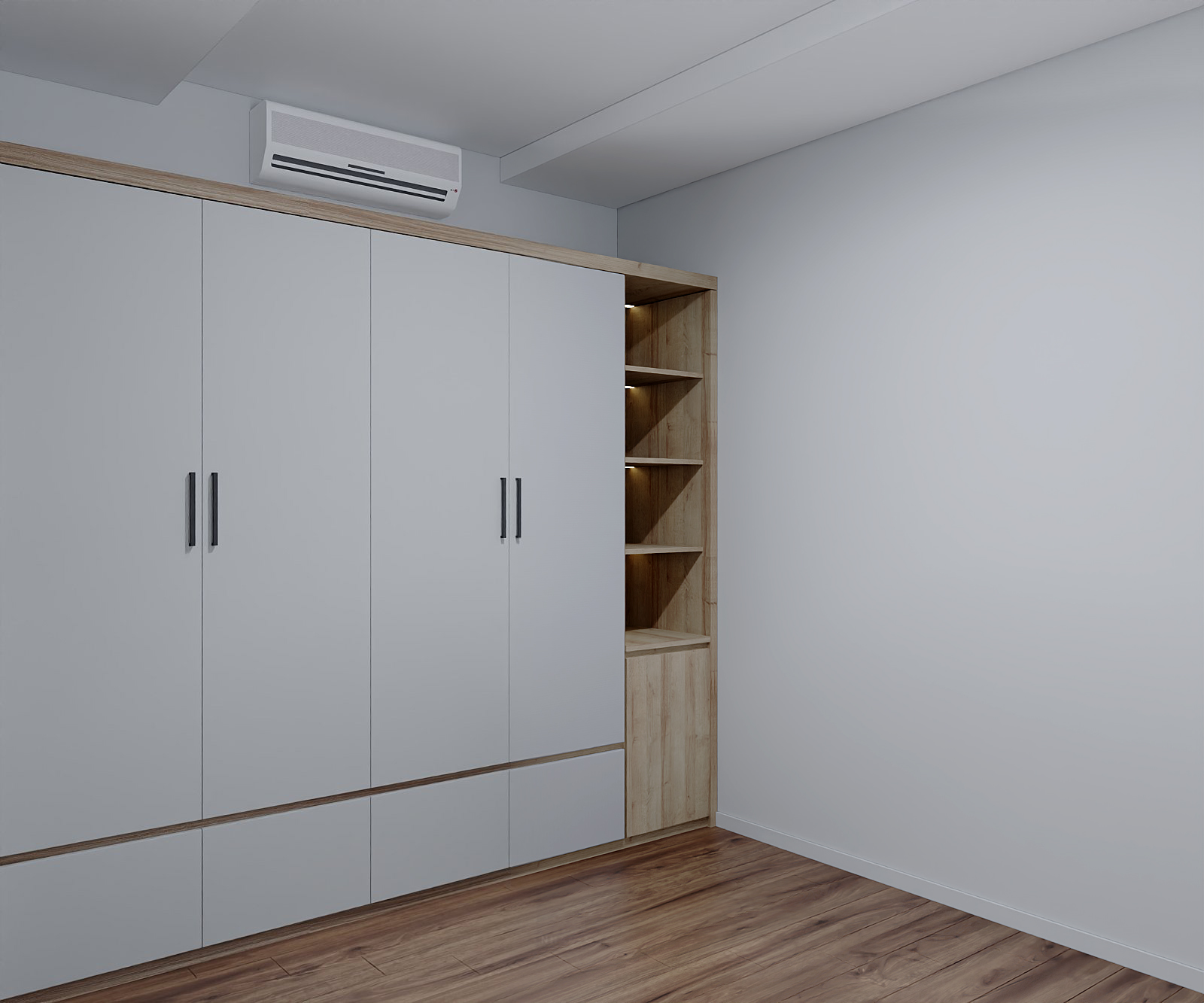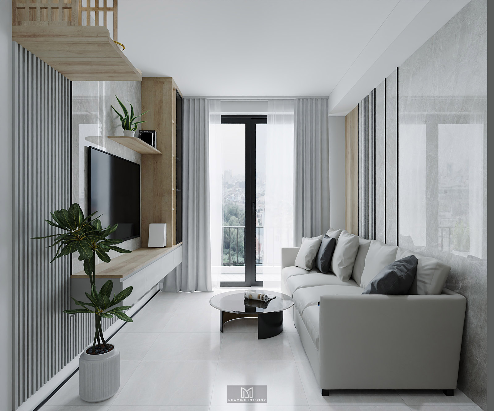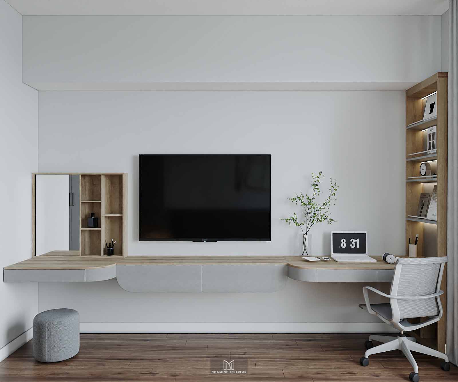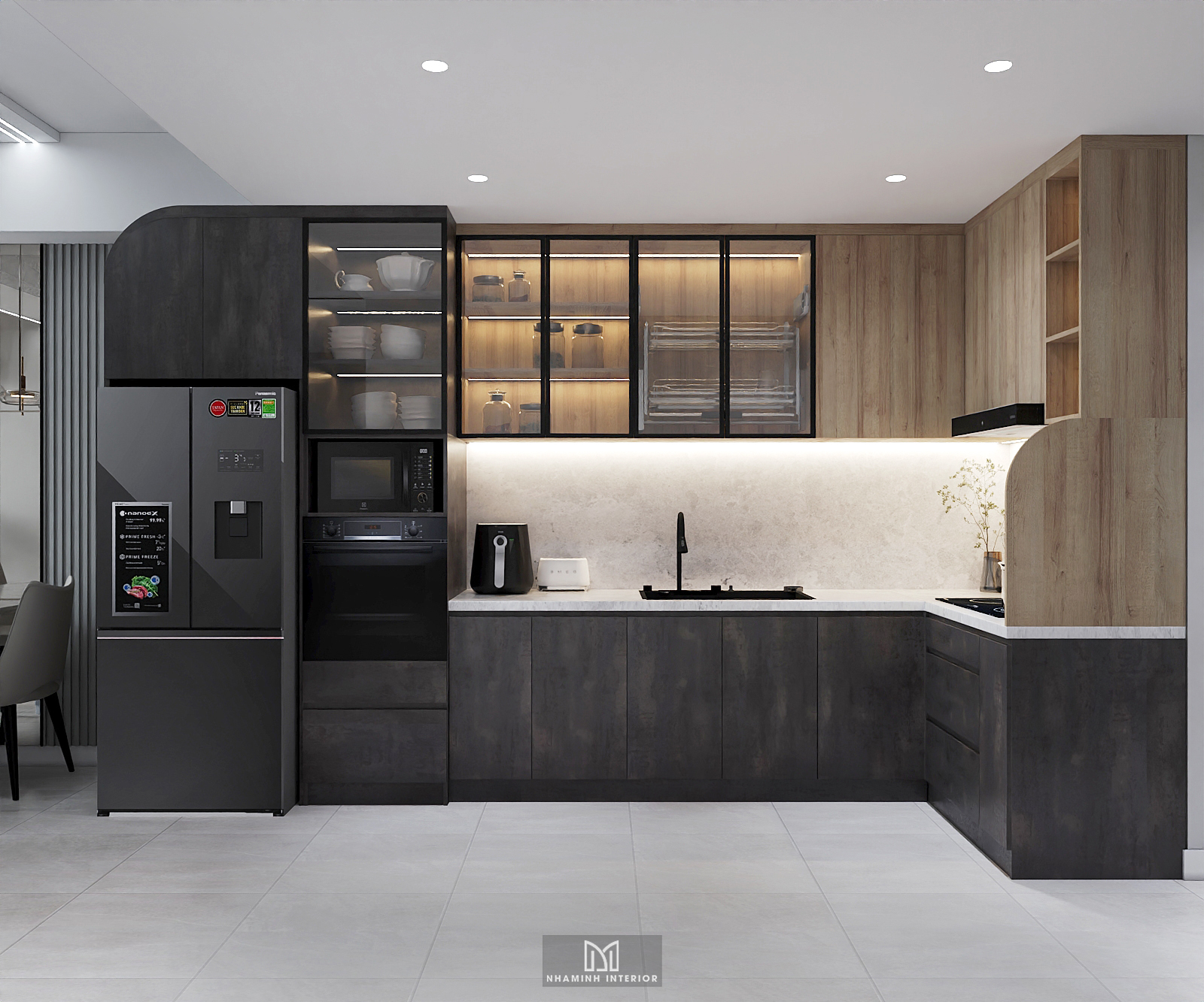 Căn hộ 2PN với sự kết hợp hài hòa giữa màu xám nhạt và gỗ sáng, đem lại cảm giác rộng rãi, thoáng đãng, hiện đại, và tinh tế.