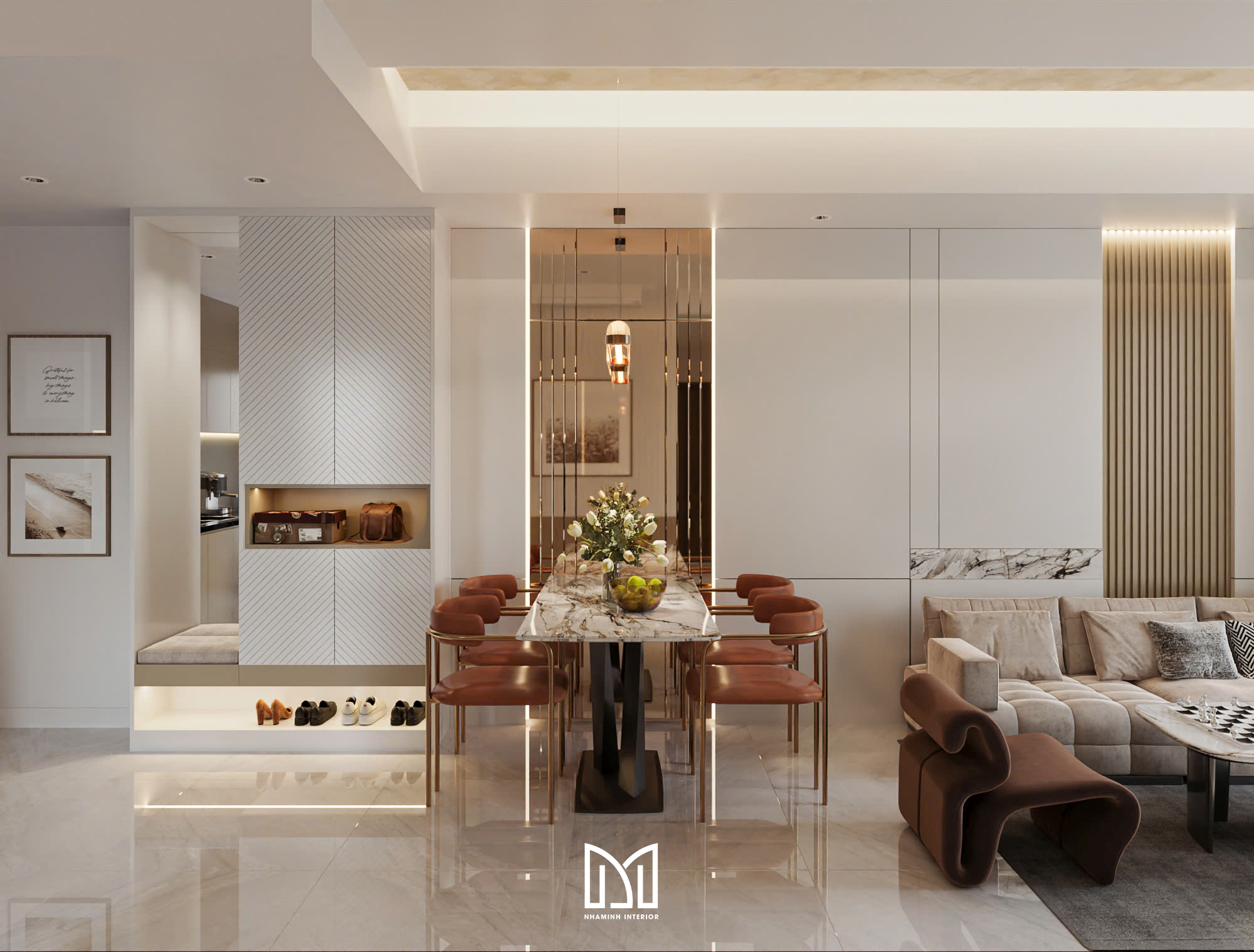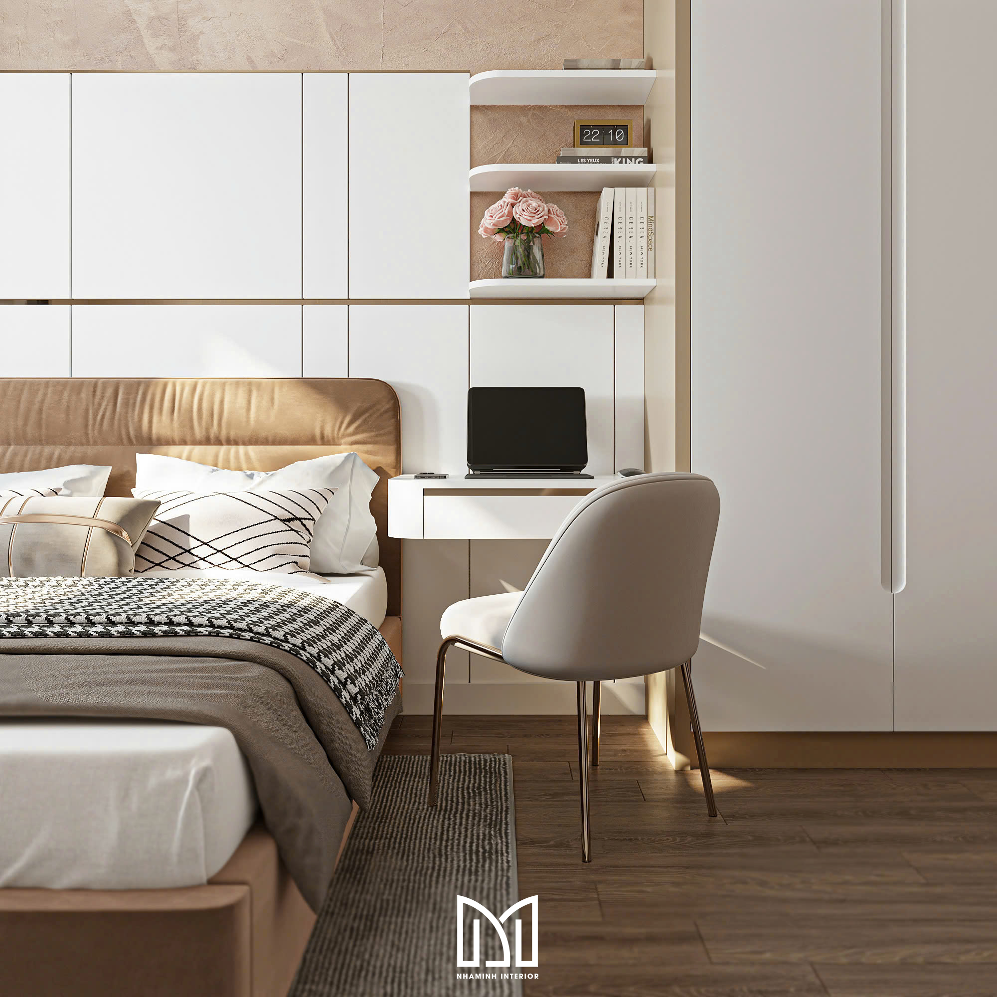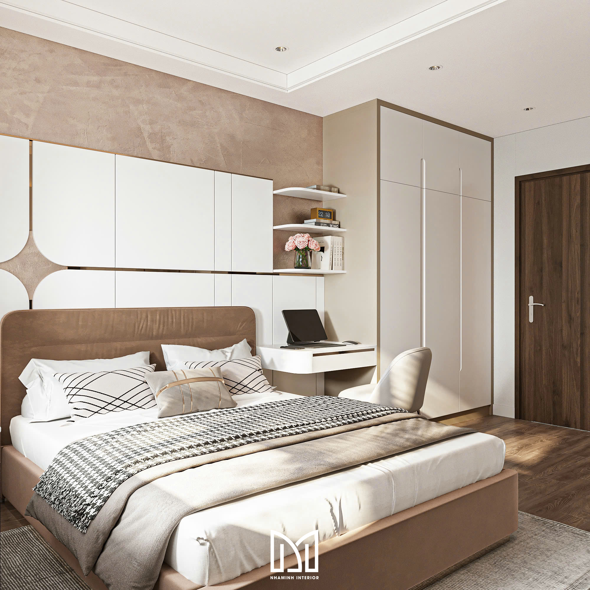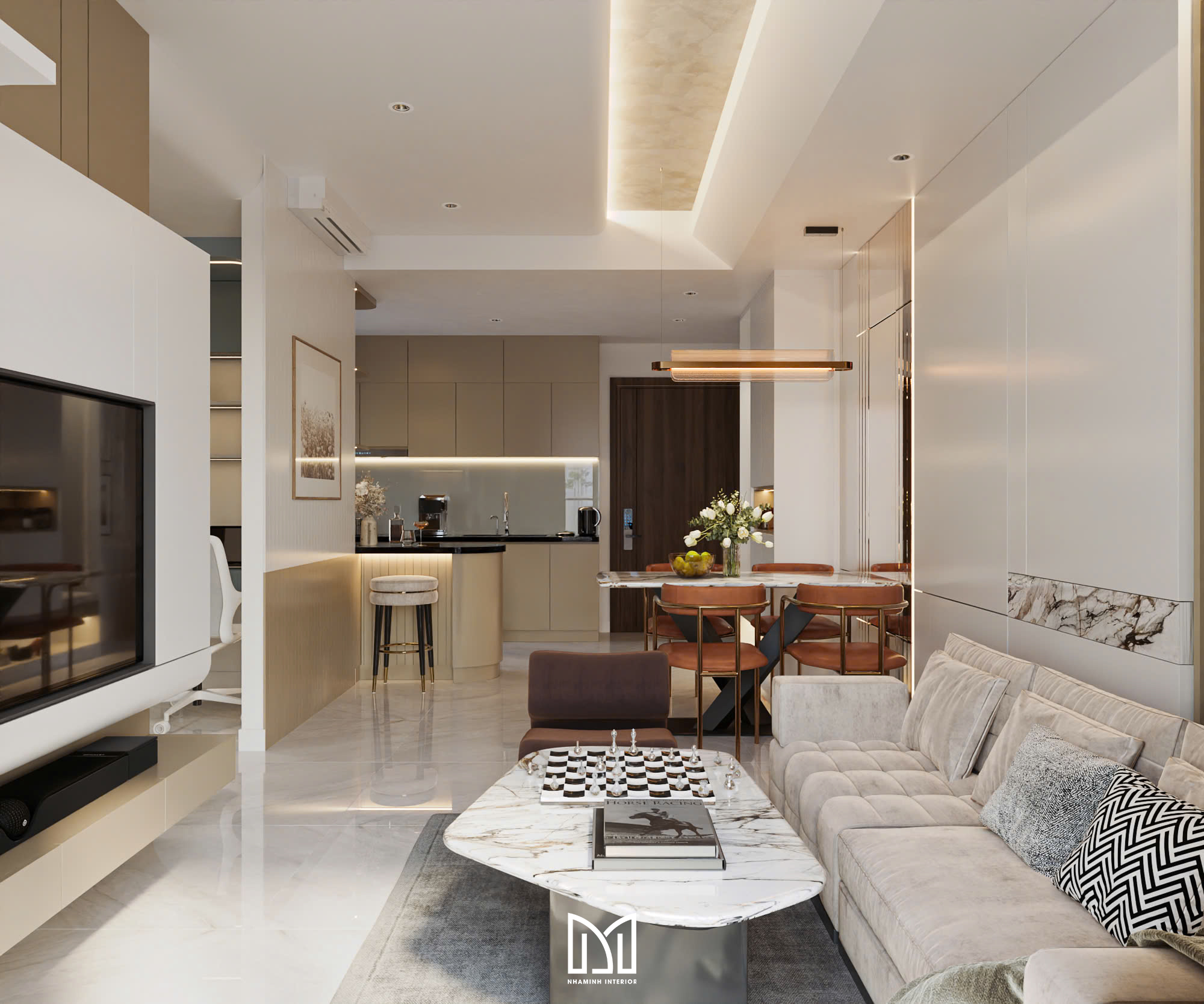 Căn hộ 2PN được thiết kế với tone vàng và trắng đem lại cảm giác sang trọng và thanh lịch.