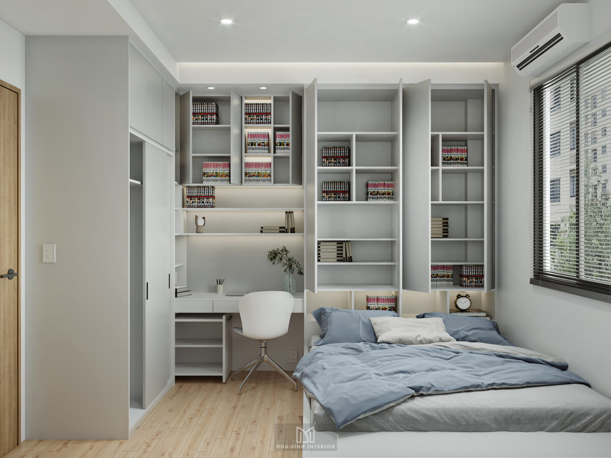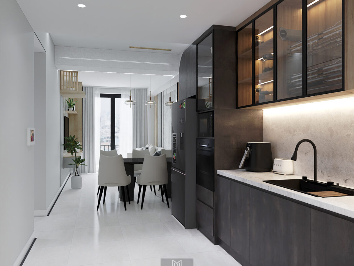 Với sự kết hợp giữa màu xanh nhạt – đại diện cho thanh lịch, và xám – đại diện cho sự sang trọng, hiện đại, ngôi nhà thể hiện rõ được cá tính và gu thẩm mỹ của chủ nhà.