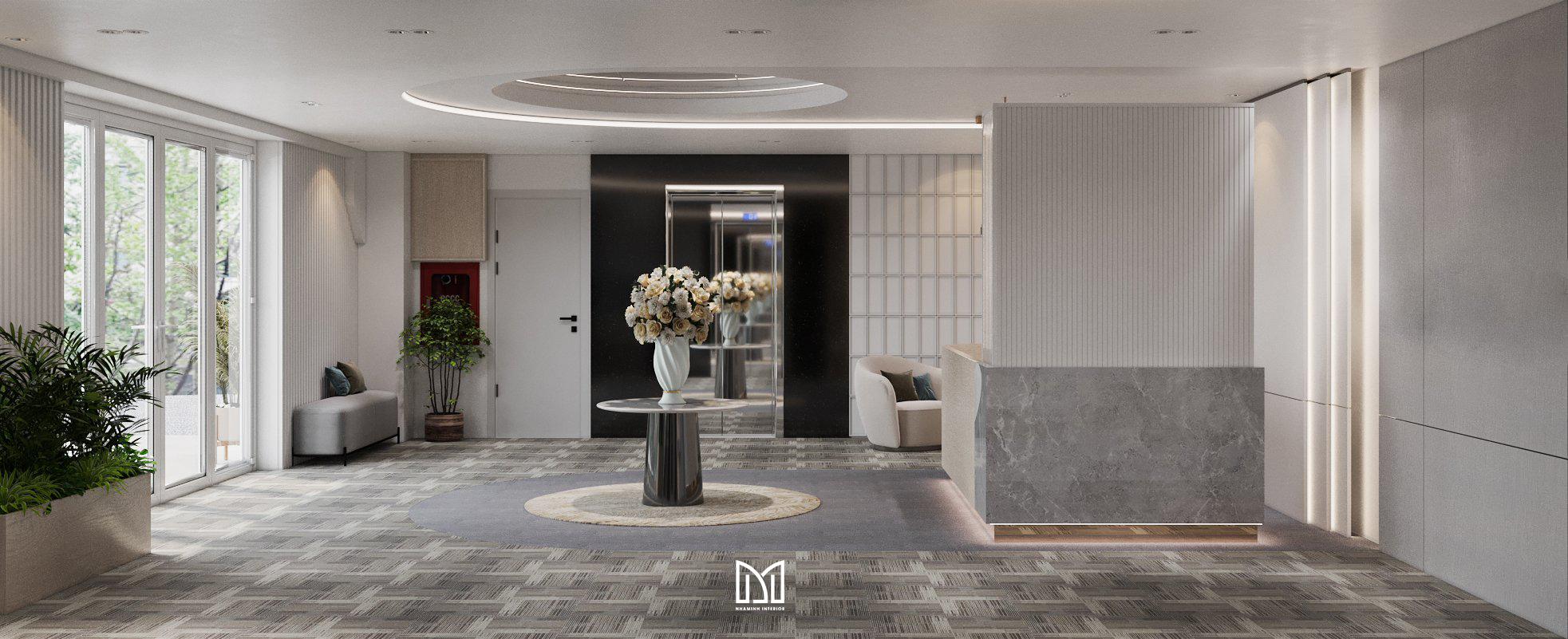Sảnh chờ công ty được thiết kế theo phong cách hiện đại và sang trọng, là nơi tiếp đón khách hàng mỗi ngày.
